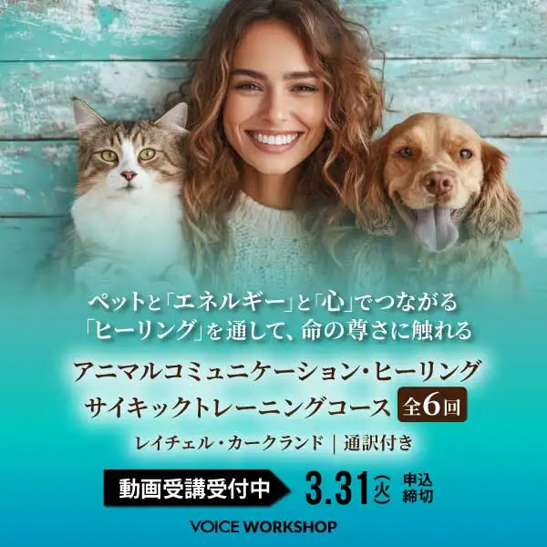 動物たちのエネルギーと魂とダイレクトにつながり、心の声を受け取り、ヒーリングを行うまでの流れを実践的に学べる、動物への癒しのスキルを身に付けたい方に最適なトレーニングです。